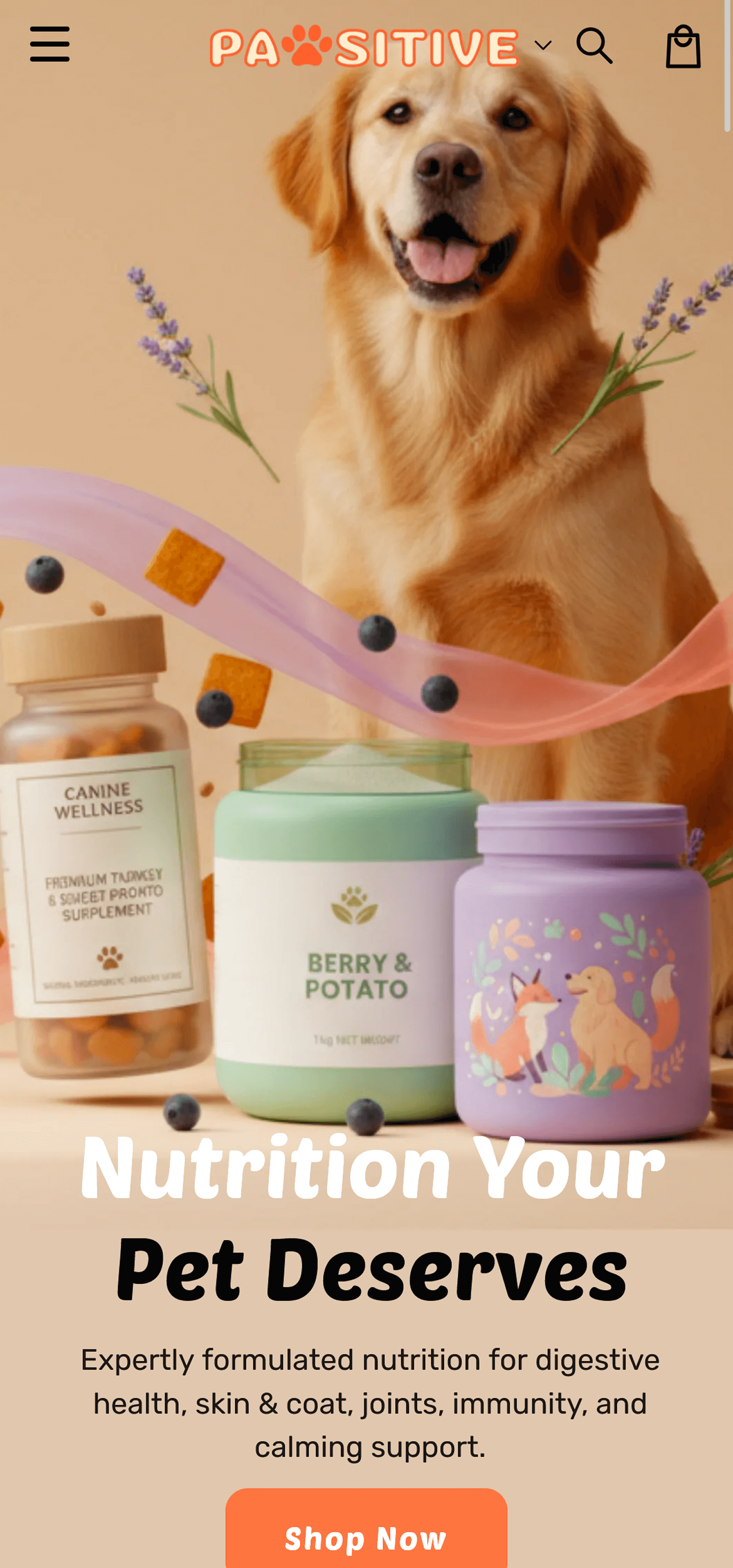 Online pet wellness and nutrition shop focused on products for happy and healthy pets.
