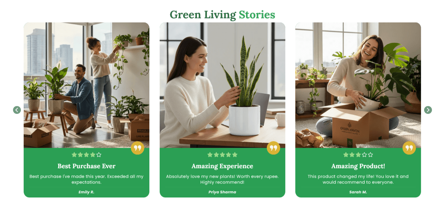 Testimonials, Facebook Testimonials, Trustpilot Reviews, Review Avatars, Rating Stars.